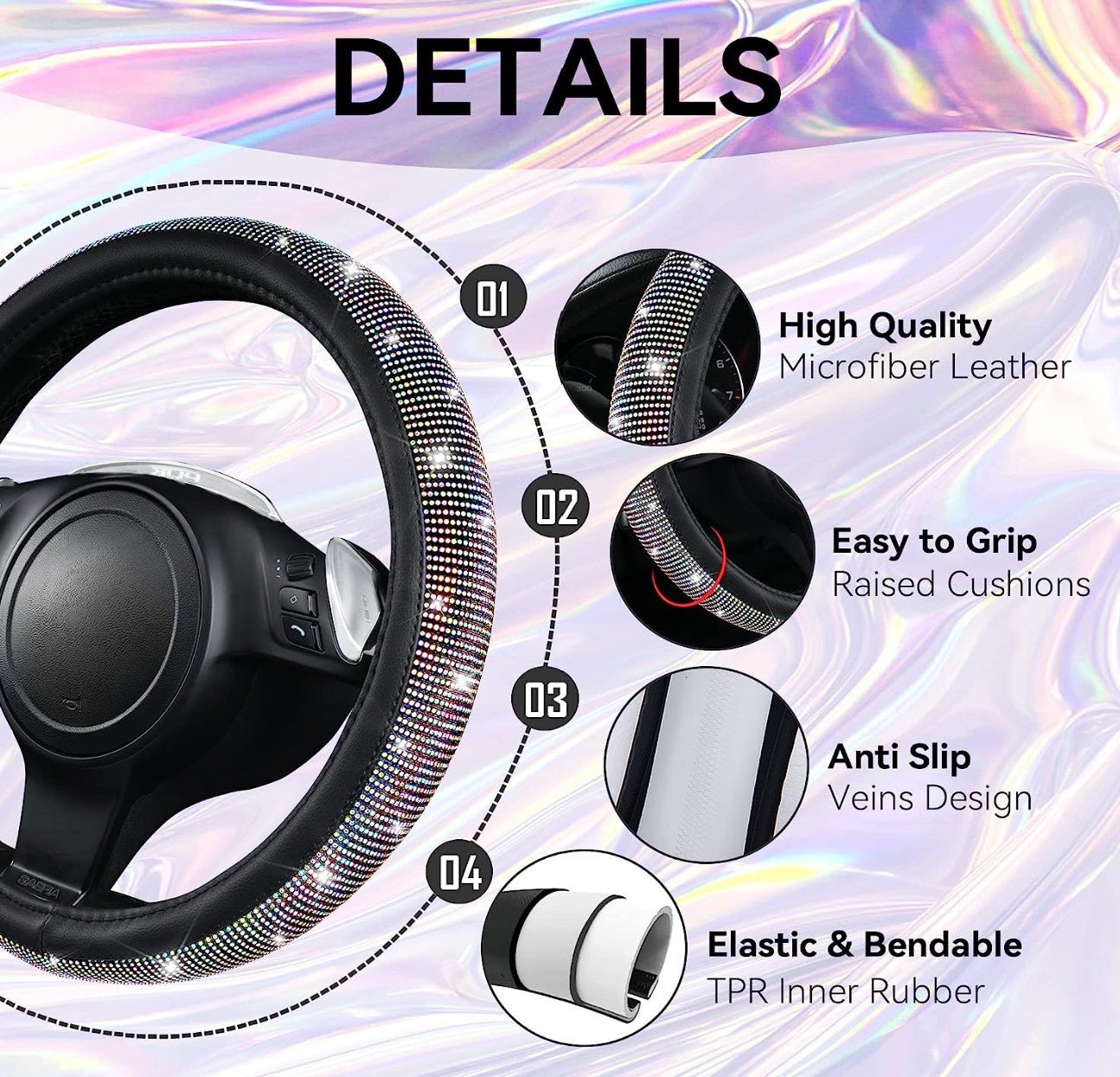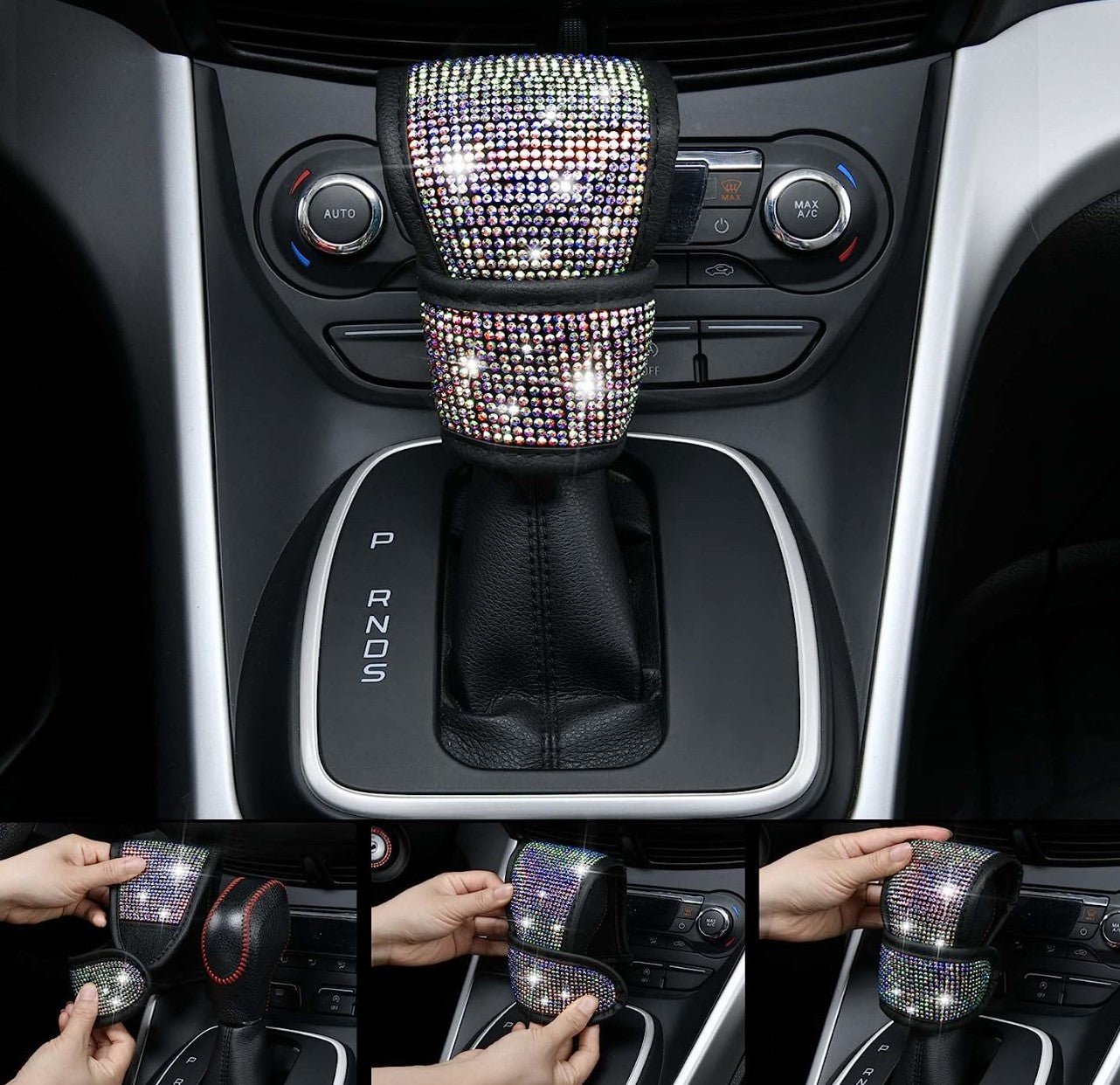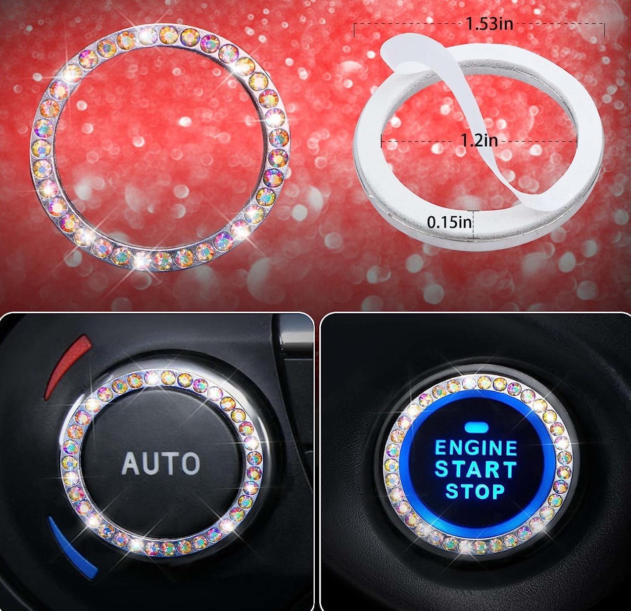 7 PCS Bling Car Accessories for Women, Sparkly Rhinestone Diamond Steering Wheel Cover, Bling Seat Belt Cushion, Shift Knob Cover, Push Start Button Ring, Car Cup Holder Coaster, Multicolor - Fashion Car Inc